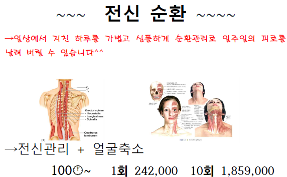 전신순환관리 + 윤곽관리 +스킨케어